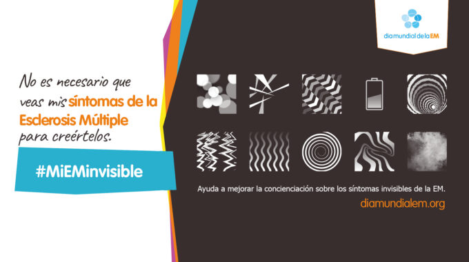 El Día Mundial de la EM de 2019 se celebrará el 30 de mayo. La campaña de 2019 se llama «Mi EM Invisible» y el objetivo es mejorar la visibilidad de la Esclerosis Múltiple y dar visibilidad a los síntomas invisibles.